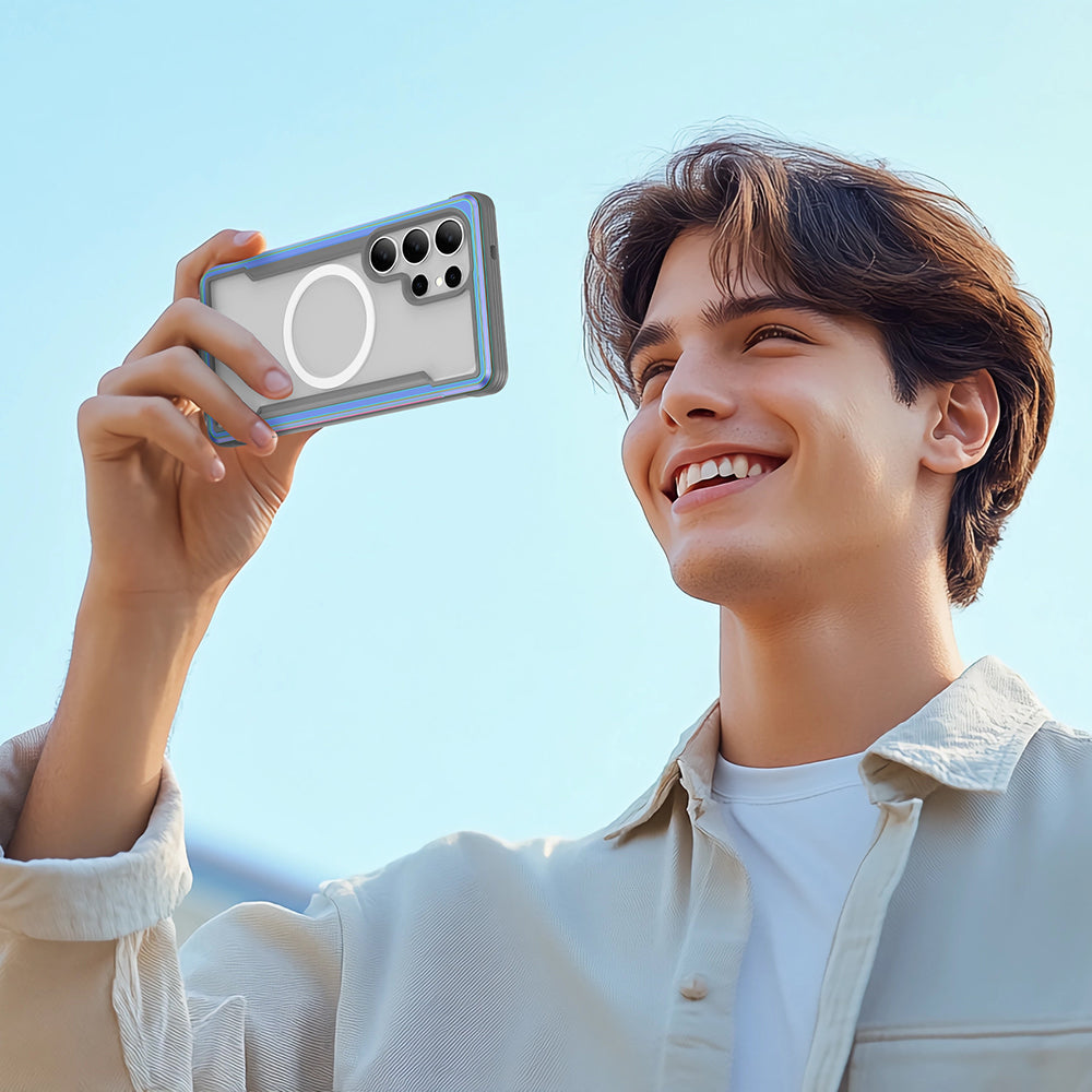 Galaxy S25 Ultra Kılıf M-safe Şarj Özellikli Airbagli Raptic Shield Serisi Şeffaf Arka Yüzey Kılıf