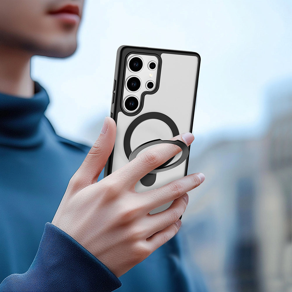 Galaxy S25 Ultra Kılıf Magsafe Şarj Özellikli Raptic Air Stand Serisi Buzlu Transparan Tasarımlı Standlı Kapak