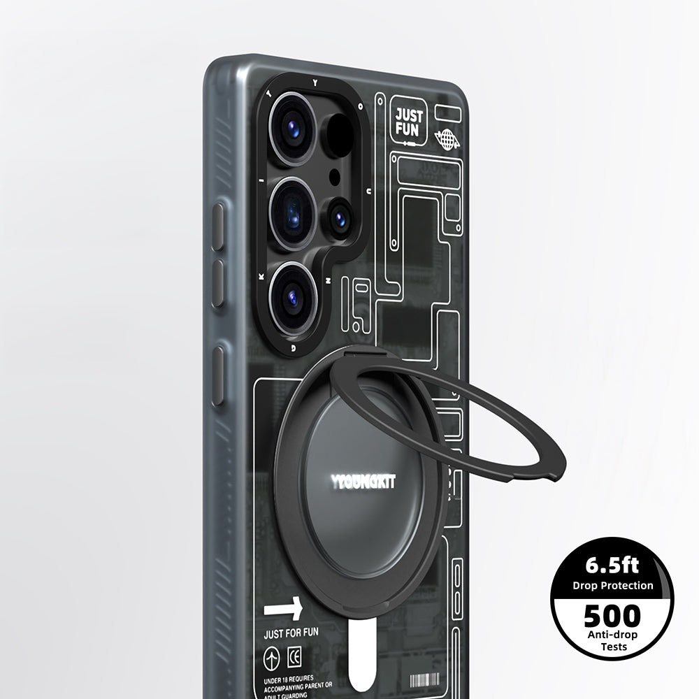 Galaxy S25 Ultra Kılıf M-safe Şarj Özellikli Youngkit 360° Standlı Technology Serisi Kılıf