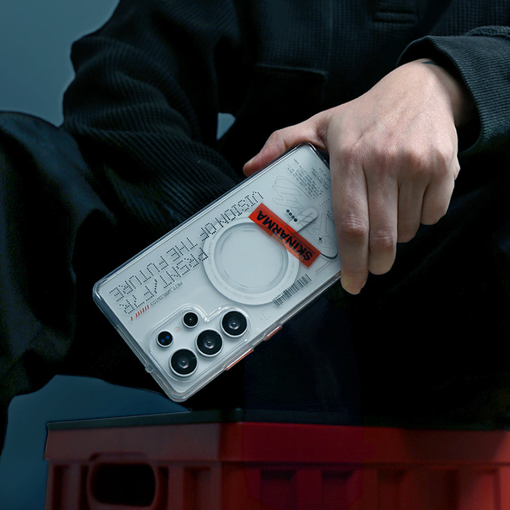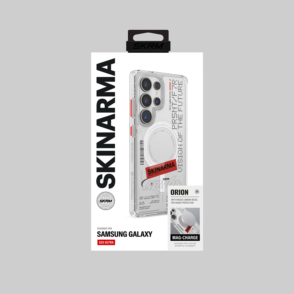 Galaxy S25 Ultra Kılıf Skinarma M-safe Şarj Özellikli Yazı Desenli Airbag Tasarımlı Orion Kılıf