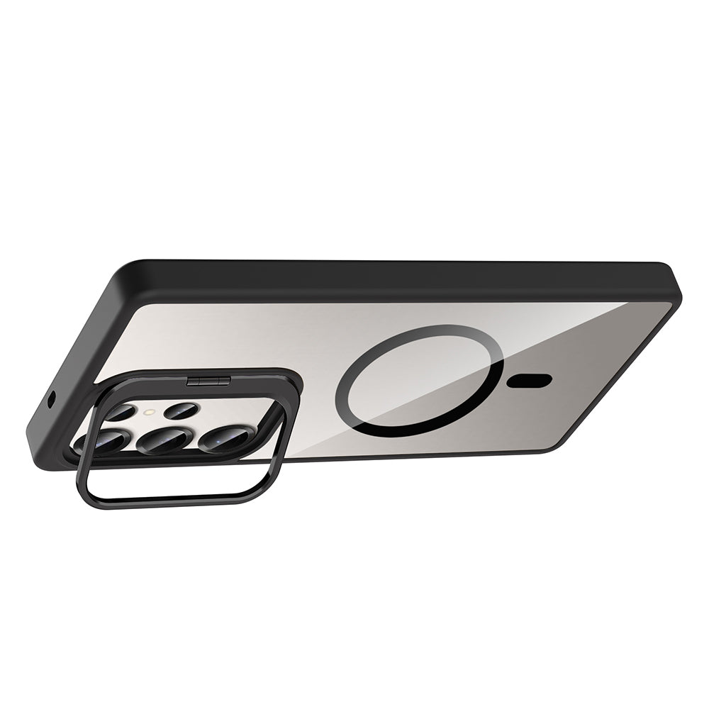 Galaxy S25 Ultra Kılıf Standlı ve Kamera Lens Hediyeli M-Safe Şarj Özellikli Zore Etro Kapak Siyah