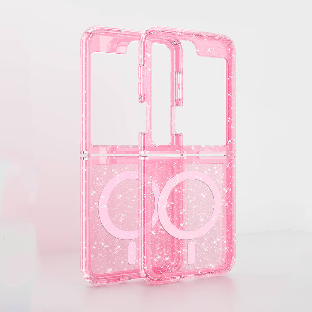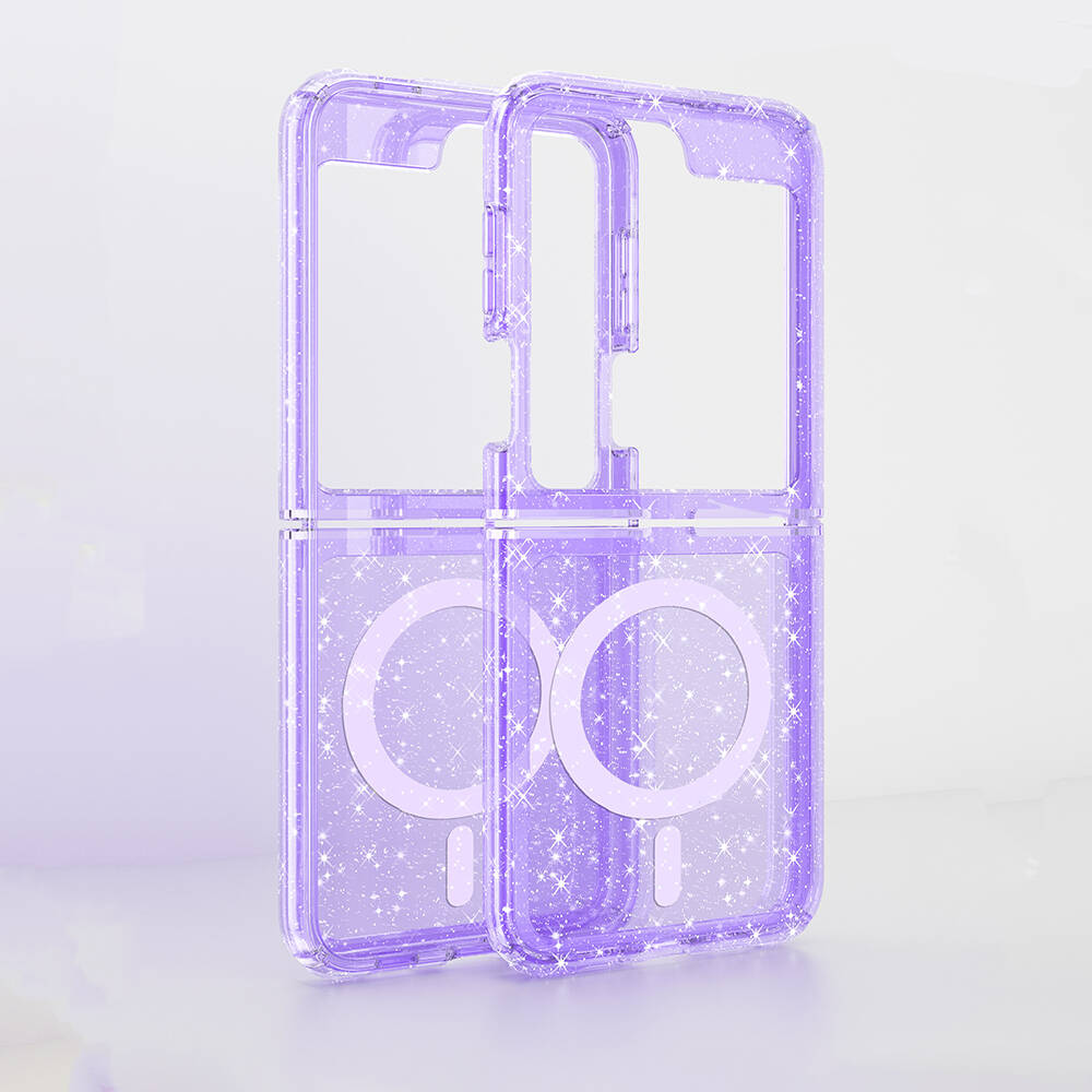 Galaxy Z Flip 6 Kılıf Magsafe Şarj Özellikli Parlayan Simli Saydam Renkli Zore Allstar Kapak