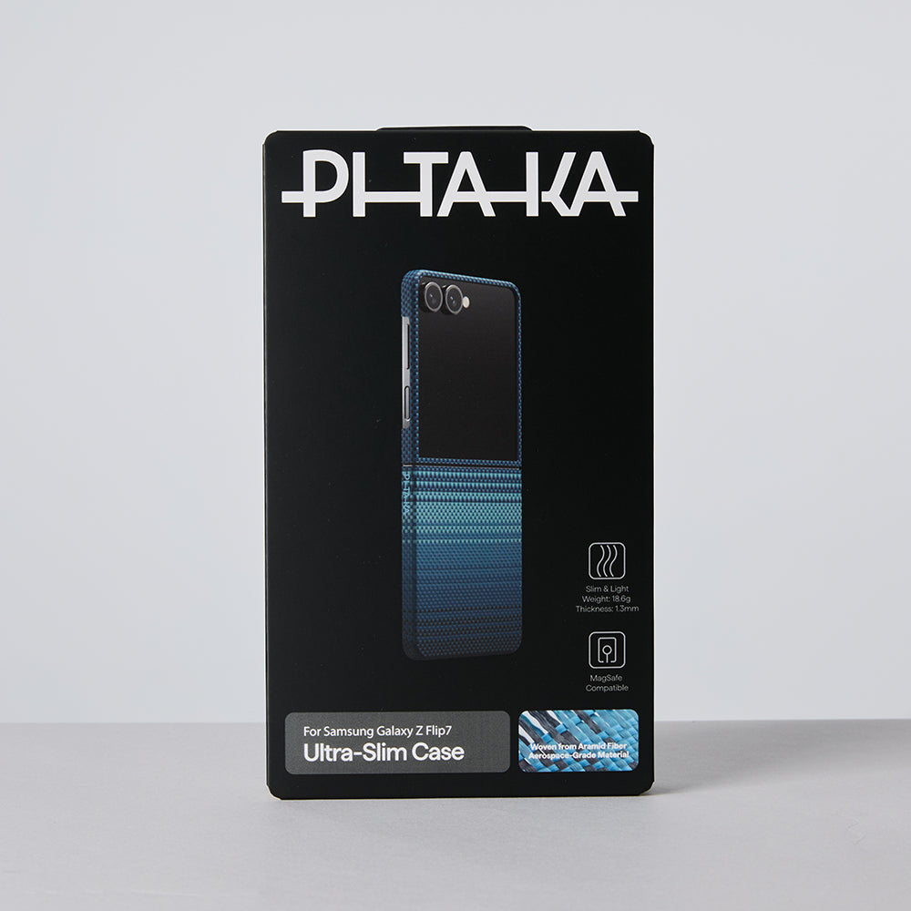 Galaxy Z Flip 7 Kılıf M-safe Şarj Özellikli Aramid Fiber Pitaka Tactile Woven Sunset-Moonrise Serisi Kılıf