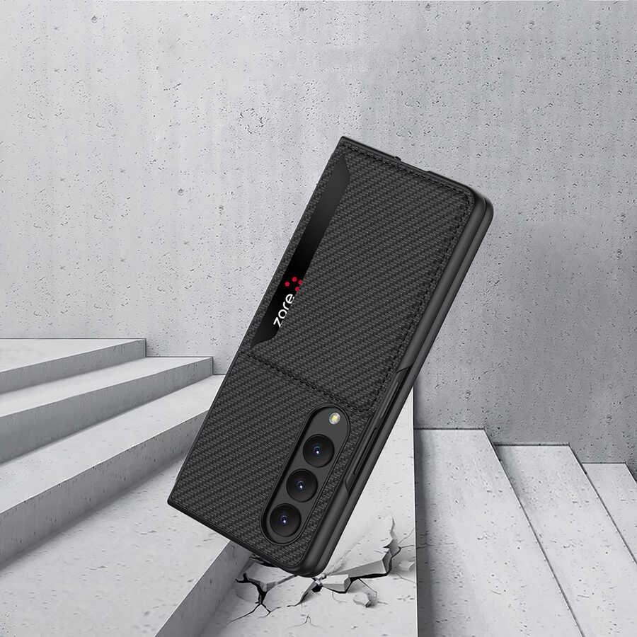 Galaxy Z Fold 4 Kılıf Karbonfiber Arka Yüzey Zore Kartlıklı Kıpta Silikon Kılıf