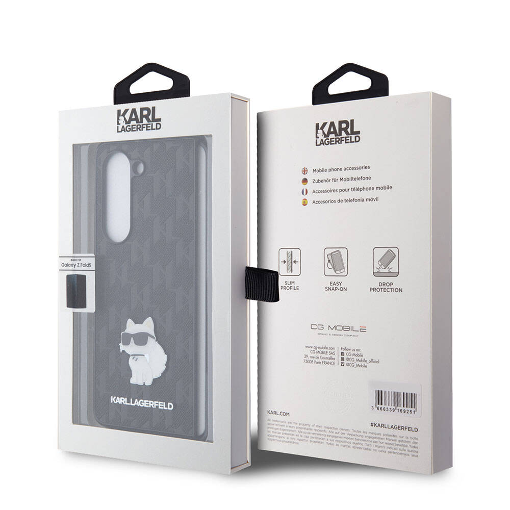 Galaxy Z Fold 5 Kılıf Karl Lagerfeld Orjinal Lisanslı KL Desenli Choupette İkonik Saffiano Kılıf