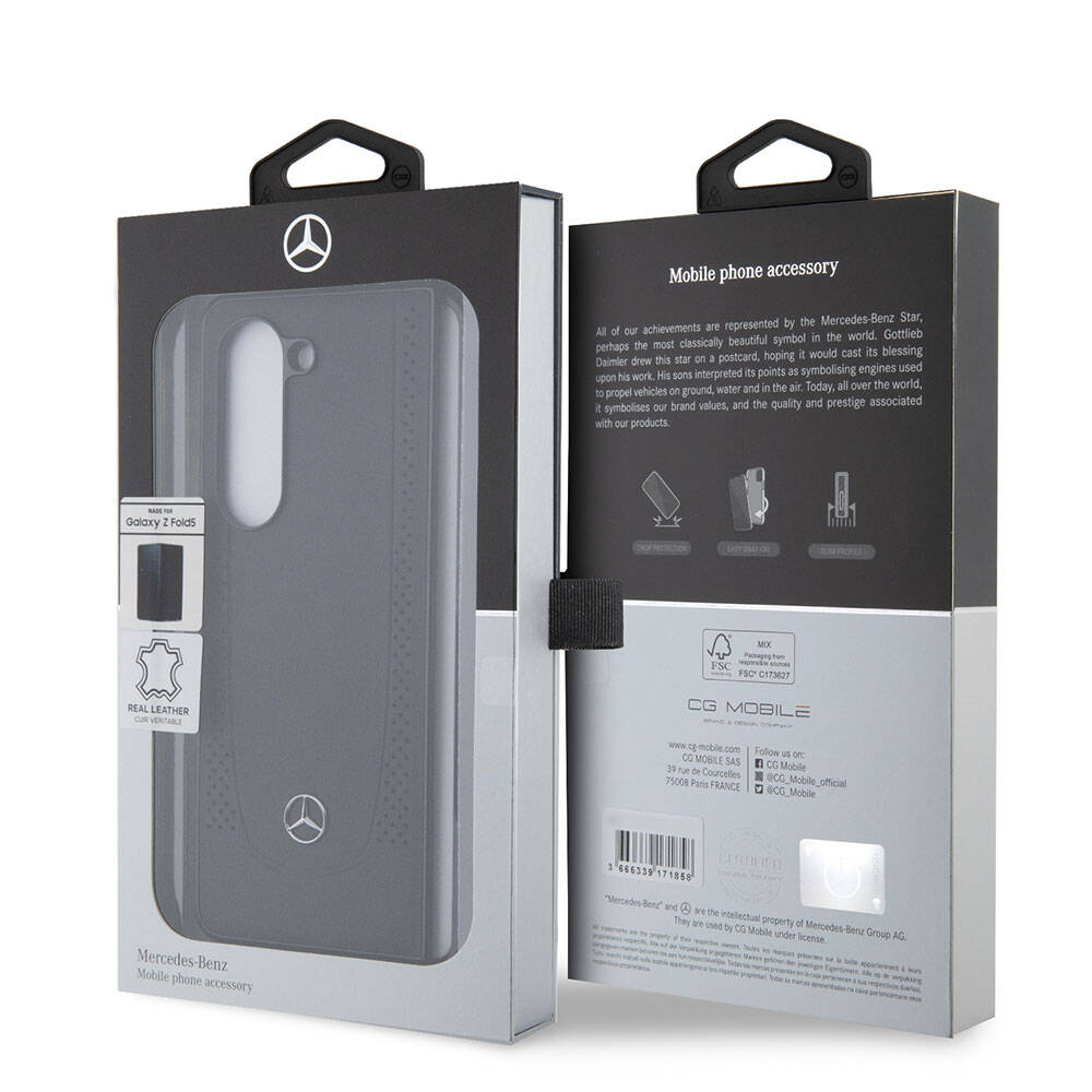 Galaxy Z Fold 5 Kılıf Mercedes Benz Orjinal Lisanslı Metal Yıldız Logolu Urban Deri Kapak