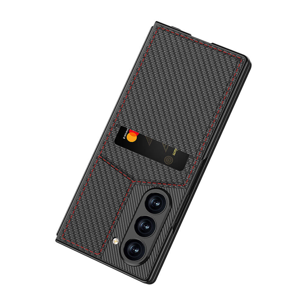 Galaxy Z Fold 6 Kılıf Karbon Fiber Kartlıklı Zore Kıpta Dik Açılan Kartlıklı Kılıf