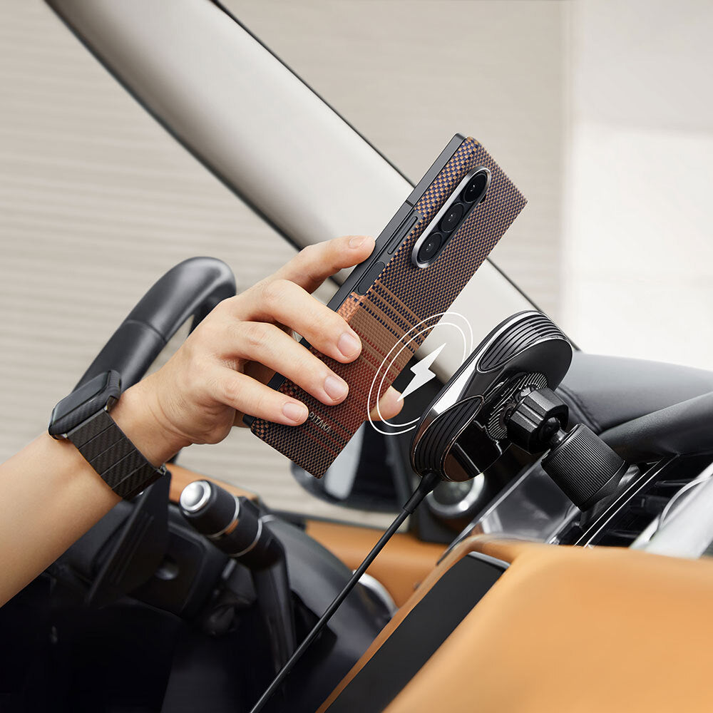Galaxy Z Fold 6 Kılıf Magsafe Şarj Özellikli Aramid Fiber Pitaka Tactile Woven Sunset-Moonrise Serisi Sunset Kapak