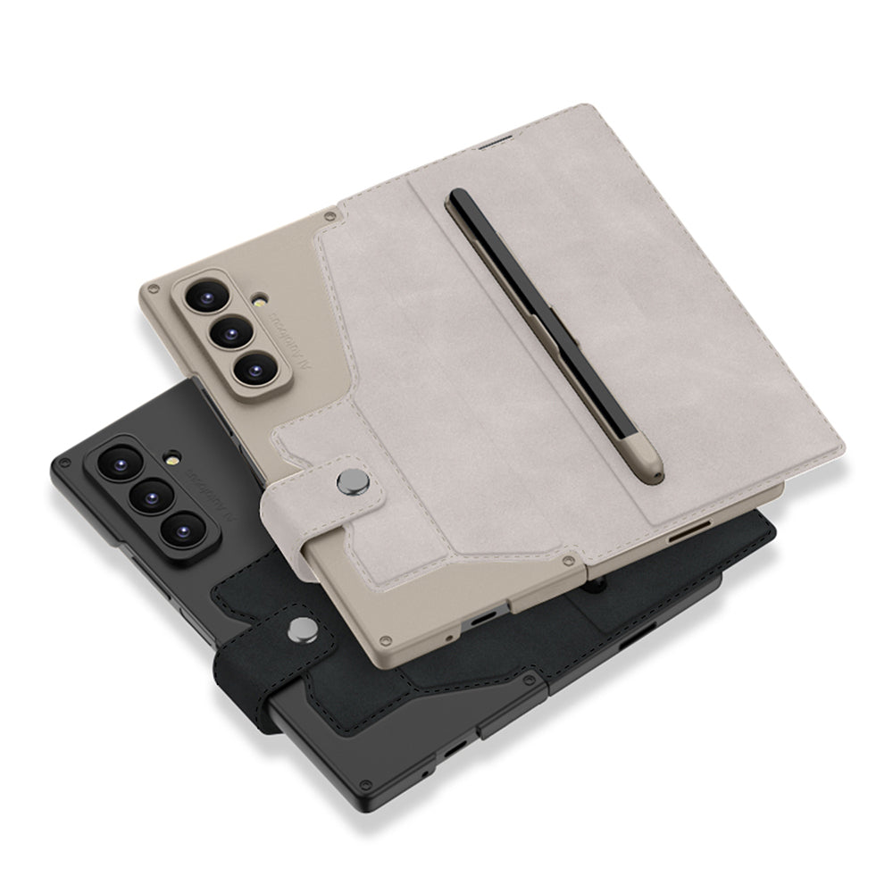 Galaxy Z Fold 7 Kılıf Kamera Korumalı Kadife Tasarımlı Zore Kıpta Kalem Bölmeli Fest Kapak