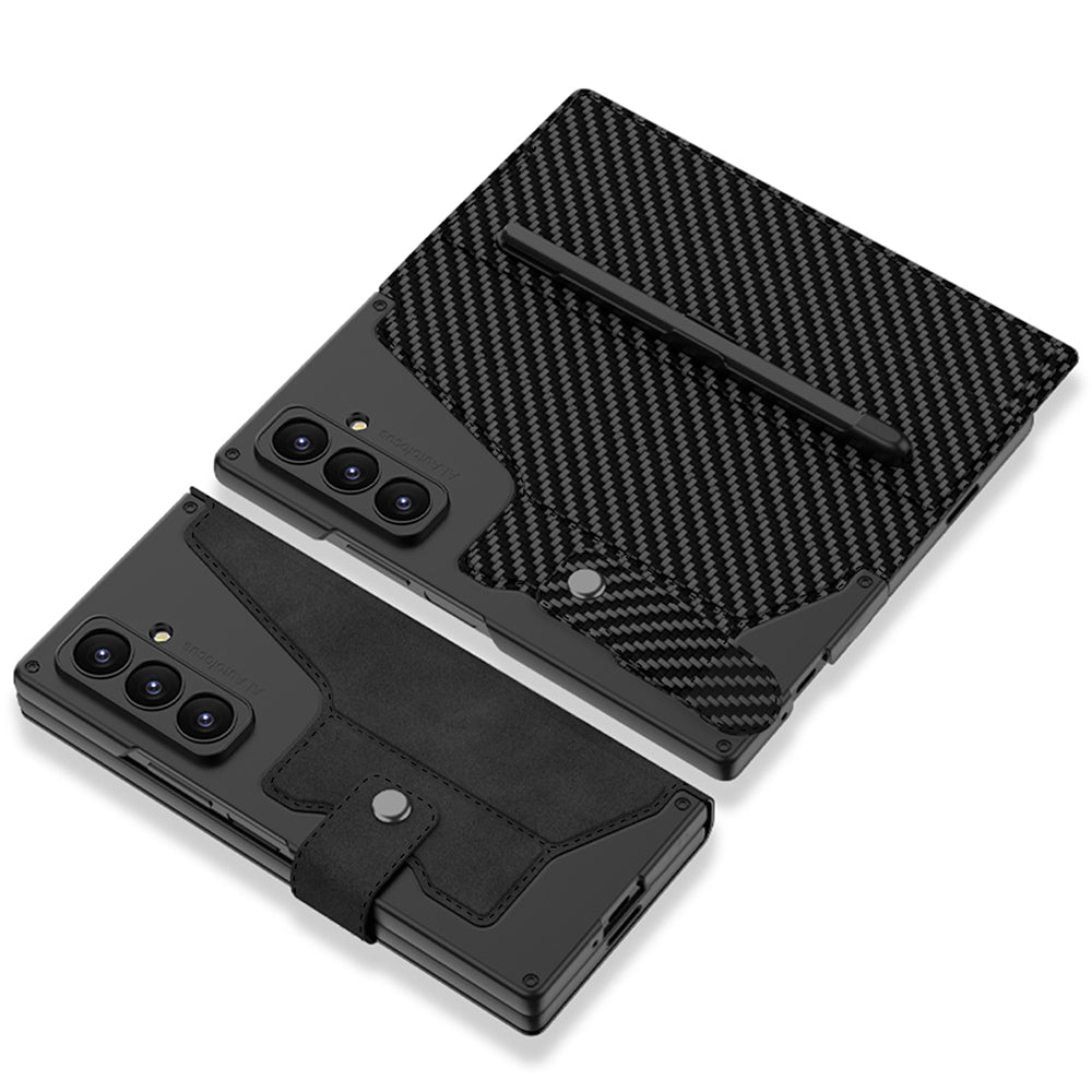 Galaxy Z Fold 7 Kılıf Kamera Korumalı Karbon Tasarımlı Zore Kıpta Kalem Bölmeli Fest Kılıf