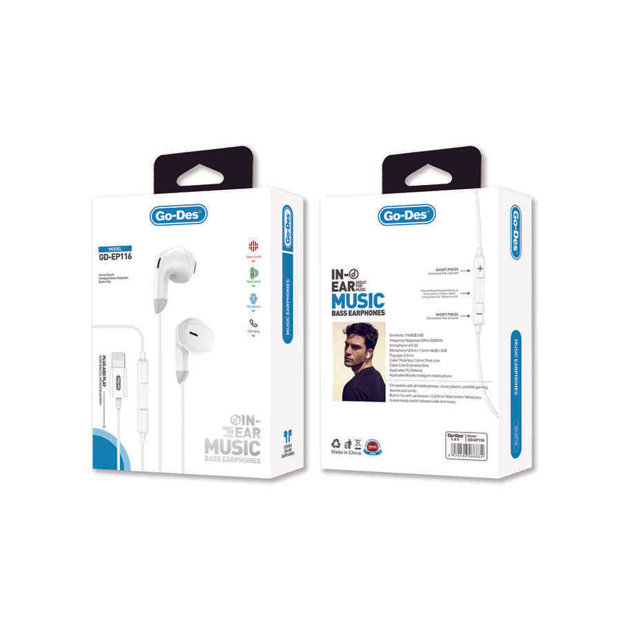 Go Des GD-EP116 Gürültü Önleyici Kulakiçi Lightning Kulaklık Beyaz