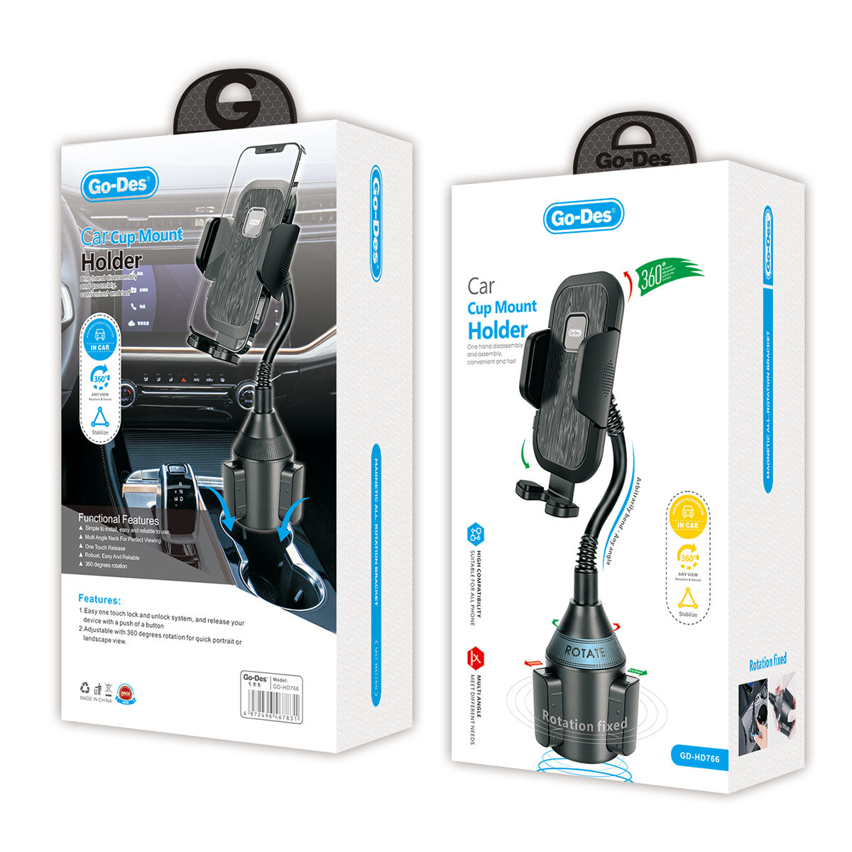 Go Des GD-HD766 Araç İçi Telefon Tutucu Bardaklık Dizaynı