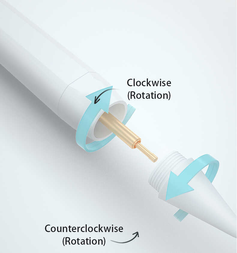 Değiştirilebilir kalem ucu (döndürülerek çıkartılabilir ve ters yönde döndürülerek takılabilir)
