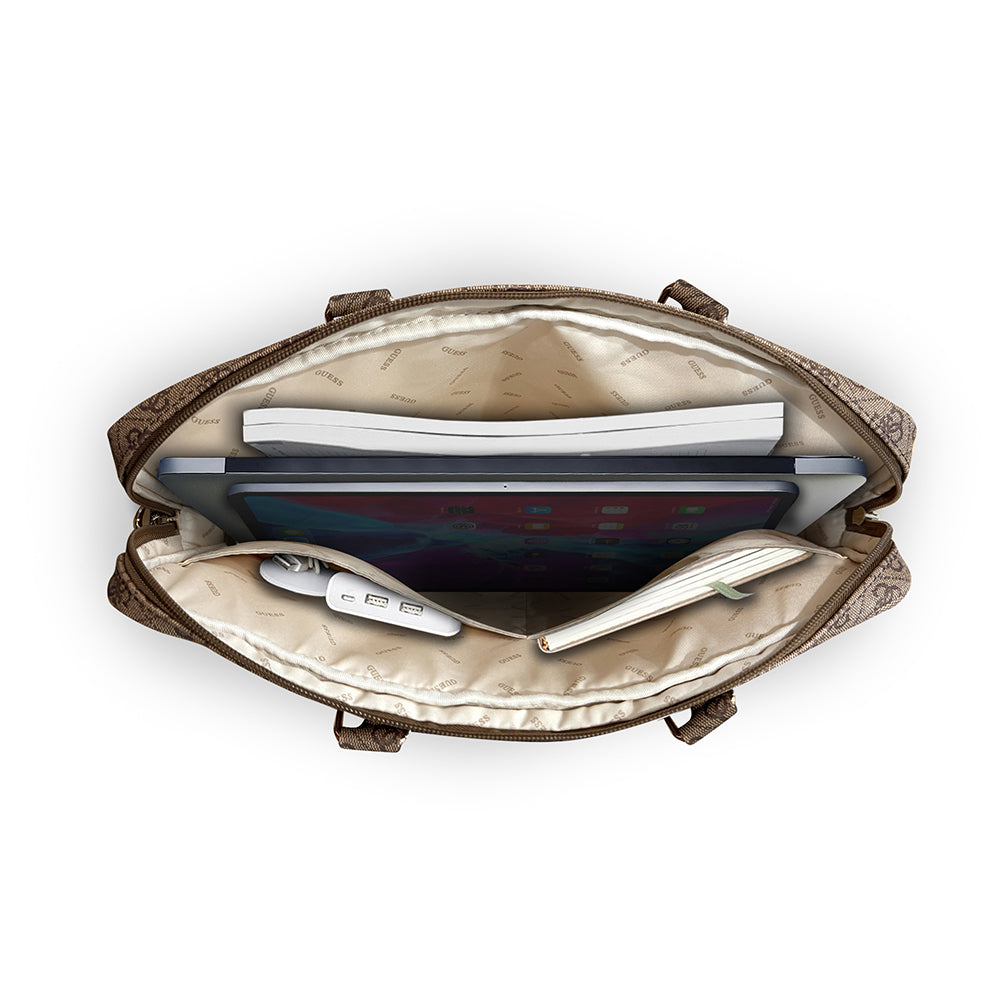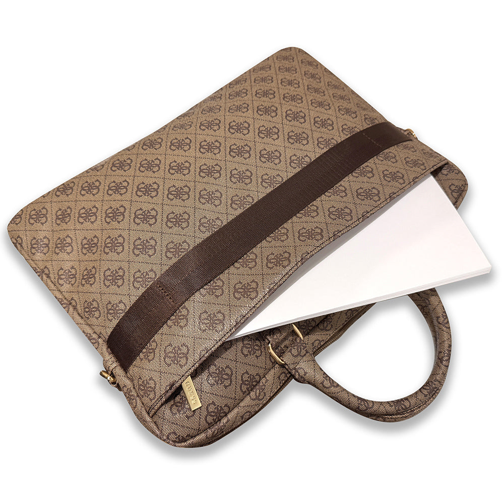 Guess Orjinal Lisanslı 4G Desenli Büyük 4G Logolu Omuz Askılı 15 inç Laptop Çantası