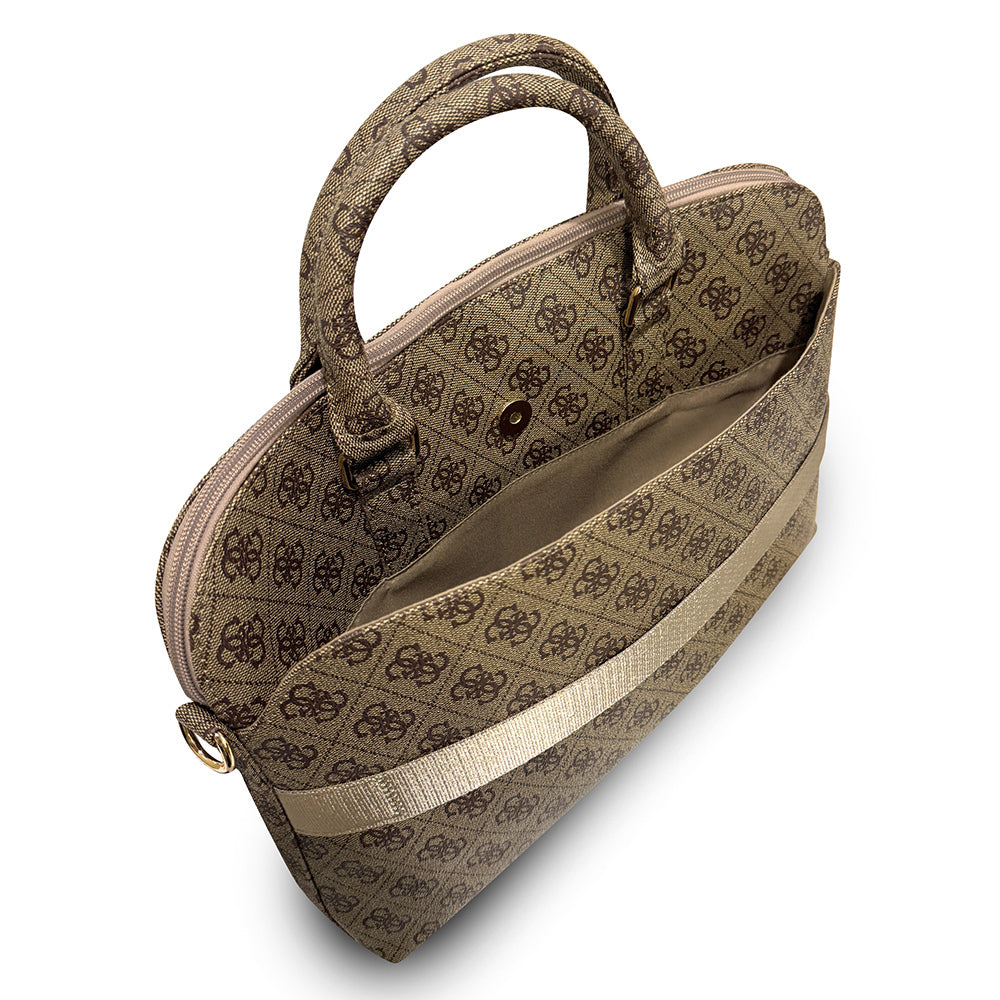Guess Orjinal Lisanslı 4G Desenli Üçgen Logolu Omuz Askılı 15 inç Laptop Çantası