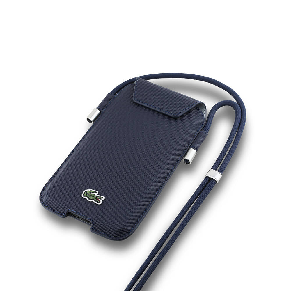 Lacoste Orjinal Lisanslı Çapraz Vücut Askılı PU Pike Desenli 6.7 inç'e Kadar Universal Kılıf