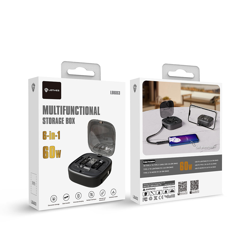 Lenyes LB603 6in1 Type-C to Type-C Kablolu 60W Çevirici Adaptör Seti Standlı Saklama Kutusu