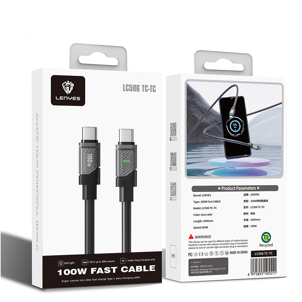Lenyes LC506, Type-C'den Type-C'ye bağlantı kurarak cihazlarınızı en yüksek verimle şarj etmenizi sağlar. PD (Power Delivery) 100W güç desteği sayesinde telefon, tablet ve hatta uyumlu dizüstü bilgisayarlar gibi yüksek enerji ihtiyacı olan cihazlarınızı bile kısa sürede şarj edebilir. Bu kablo, hem şarj hem de veri aktarımı işlemleri için en üst düzeyde performans sunar.