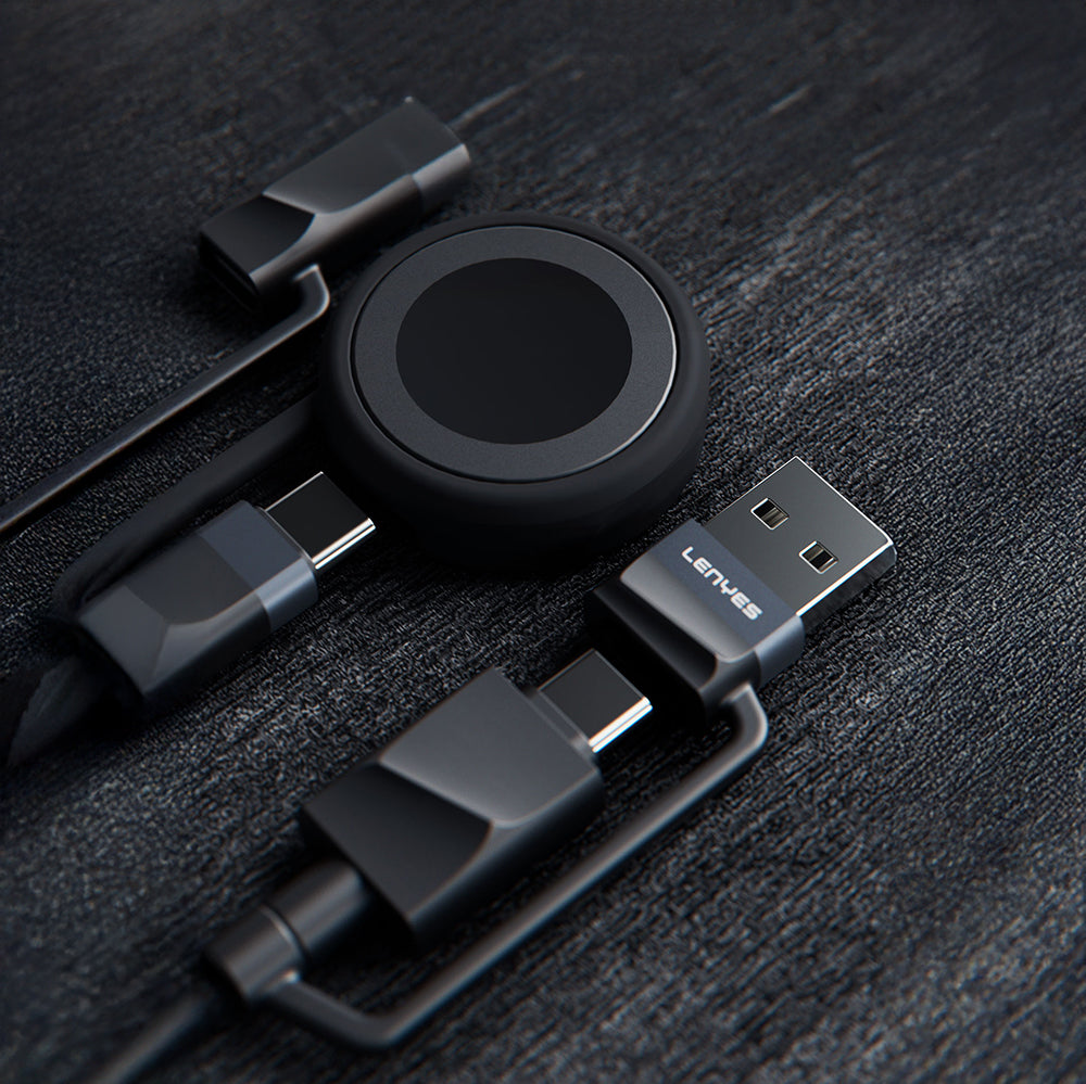 Lenyes LC541, farklı cihazlar için tek bir kablo ile maksimum uyumluluk sunar! USB-A ve Type-C girişleri ile Lightning, Type-C ve akıllı saatler için kablo ihtiyacınızı tek noktada çözer. Bu sayede hem telefonunuzu hem de akıllı saatinizi aynı anda şarj edebilir, bağlantılarınızı güçlendirebilirsiniz.