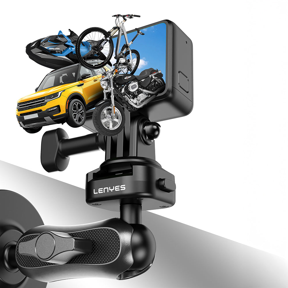Lenyes LCT104 aksiyon kamera tutucu, yüksek performanslı 3M™ VHB yapıştırma teknolojisi sayesinde yüzeye sağlamca tutunur ve en zorlu koşullarda bile güvenle kullanım sunar. Araç kapısından motosiklet kaskına, tekneden cam yüzeylere kadar birçok alanda pratik bir şekilde monte edilebilir. Bu özel vantuzlu yapı, yüksek sıcaklık ve suya karşı dayanıklılığıyla dış mekân çekimlerinde size tam destek verir.