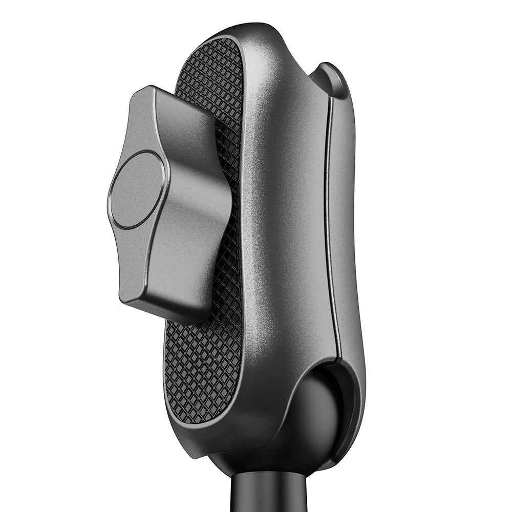 Yüksek dayanımlı alüminyum alaşımdan üretilmiş olan bu tutucu, hafif yapısına rağmen yüksek yük taşıma kapasitesine sahiptir. PC plastik ve silikon kauçuk birleşimiyle geliştirilen alt bölümü, hem sağlam bir tutuş hem de uzun süreli performans sunar. Dağ bisikletinden deniz araçlarına kadar her ortamda güvenle kullanılabilir ve hareketli sahneleri kaçırmadan kayıt altına almanıza olanak tanır