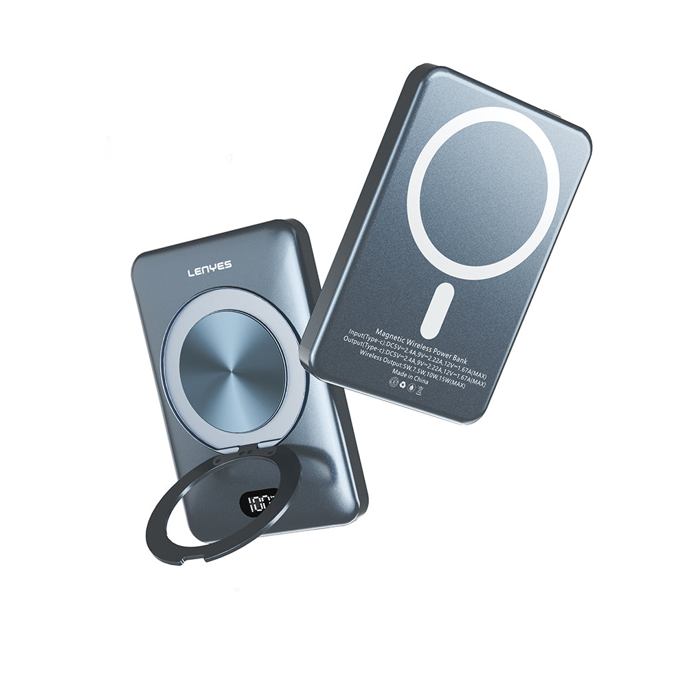 Lenyes PW0007D 20W Dijital LED Ekranlı Yüzük Standlı Wireless Powerbank 15W 5000mAh