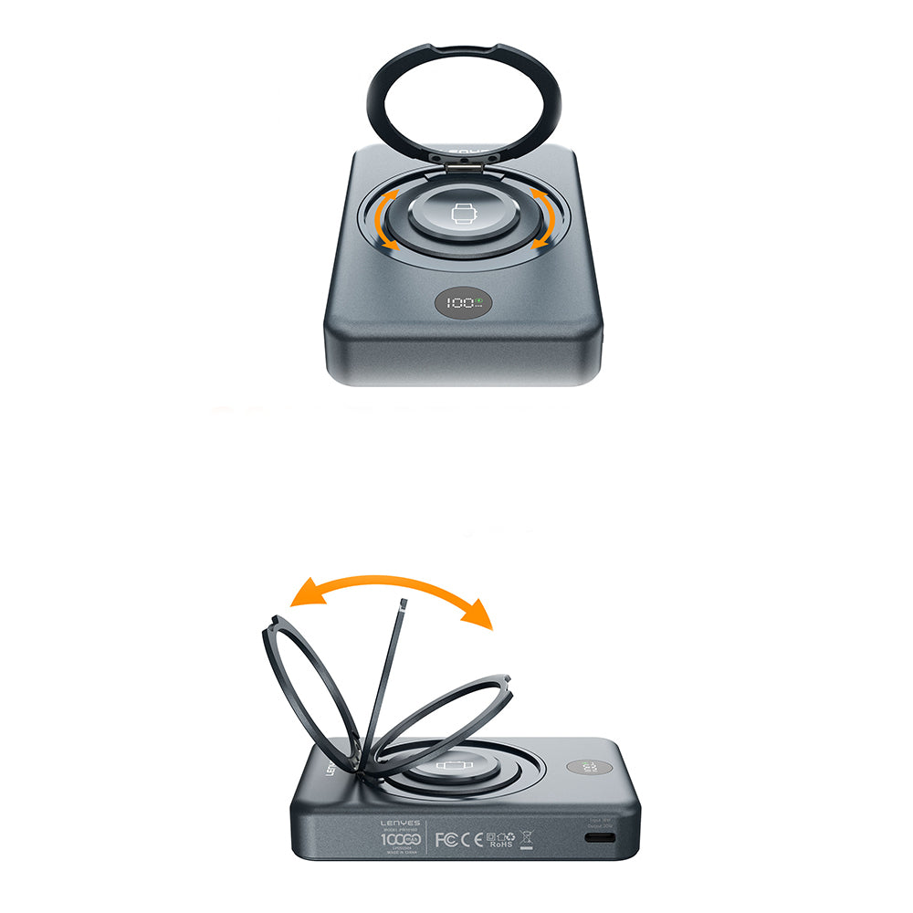 PW1010D, manyetik şarj alanı sayesinde cihazınıza sıkıca tutunur, hareket halindeyken bile bağlantı kopmaz! Üstelik cihazınız kılıf içindeyken bile güçlü çekim gücüyle tam temas sağlar. Toplu taşımada telefonla konuşurken, yürürken ya da bir kafede otururken bile cihazınız düşme riskinden tamamen uzakta olur. 360° dönebilen standı sayesinde cihazınızı ister dikey ister yatay konumda rahatlıkla kullanabilir, aynı anda hem şarj edip hem video izleyebilirsiniz!