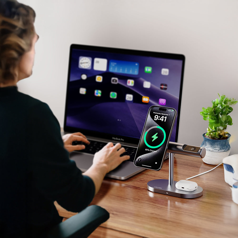 Oturma odası, çalışma masası, mutfak ya da yatak odası… Nerede olursanız olun, PW319 Qi2 her ortamda şık durur ve hayatınızı kolaylaştırır. Yatay ya da dikey yerleştirme imkanı sunan güçlü manyetik yapısı sayesinde ister video izleyin ister bildirimlerinizi kontrol edin – cihazlarınız güvenli ve enerjik! Aynı anda üç cihazı şarj edebilmesi sayesinde kablo kalabalığına son verir, tüm teknolojik ihtiyaçlarınıza tek noktadan çözüm sunar.
