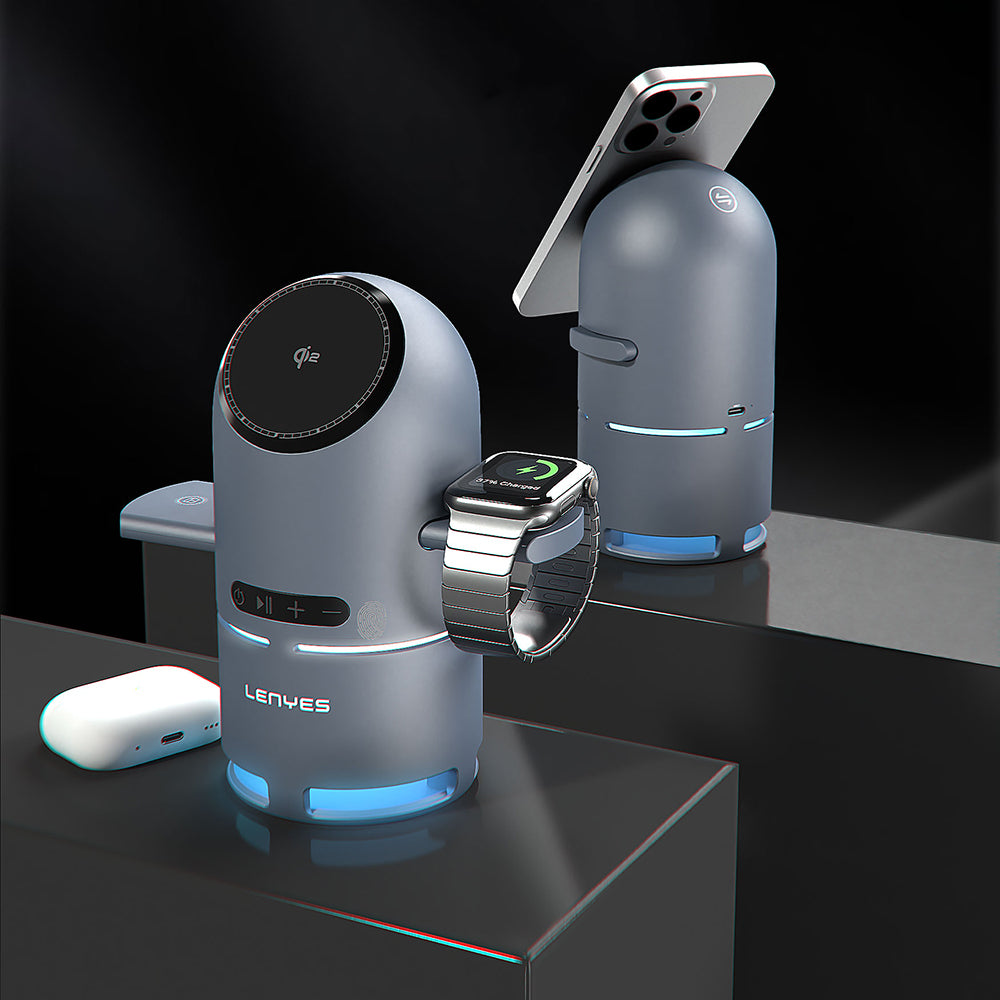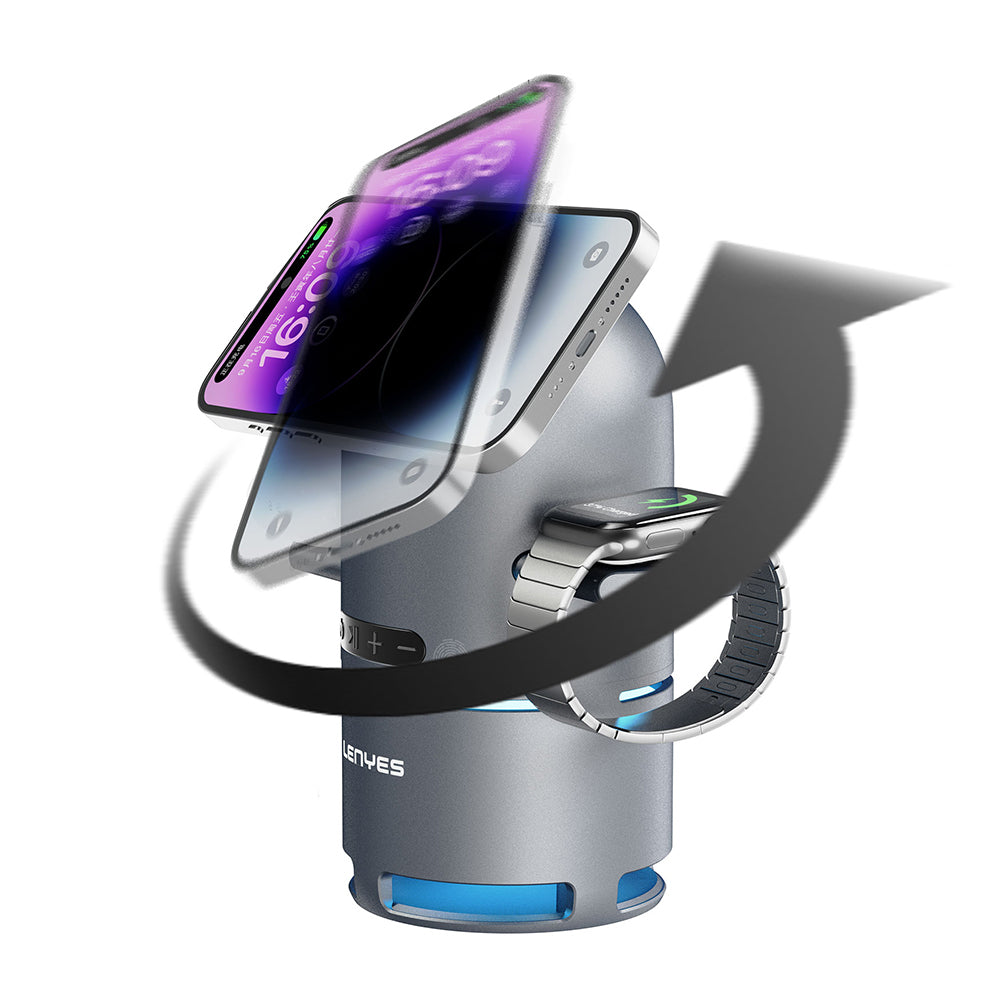 Lenyes PW321 Qi2 Şarj Teknolojili Bluetooth Speaker Hoparlör Özellikli Telefon&Akıllı Saat&Kulaklık 15W 4in1 Kablosuz Şarj Standı