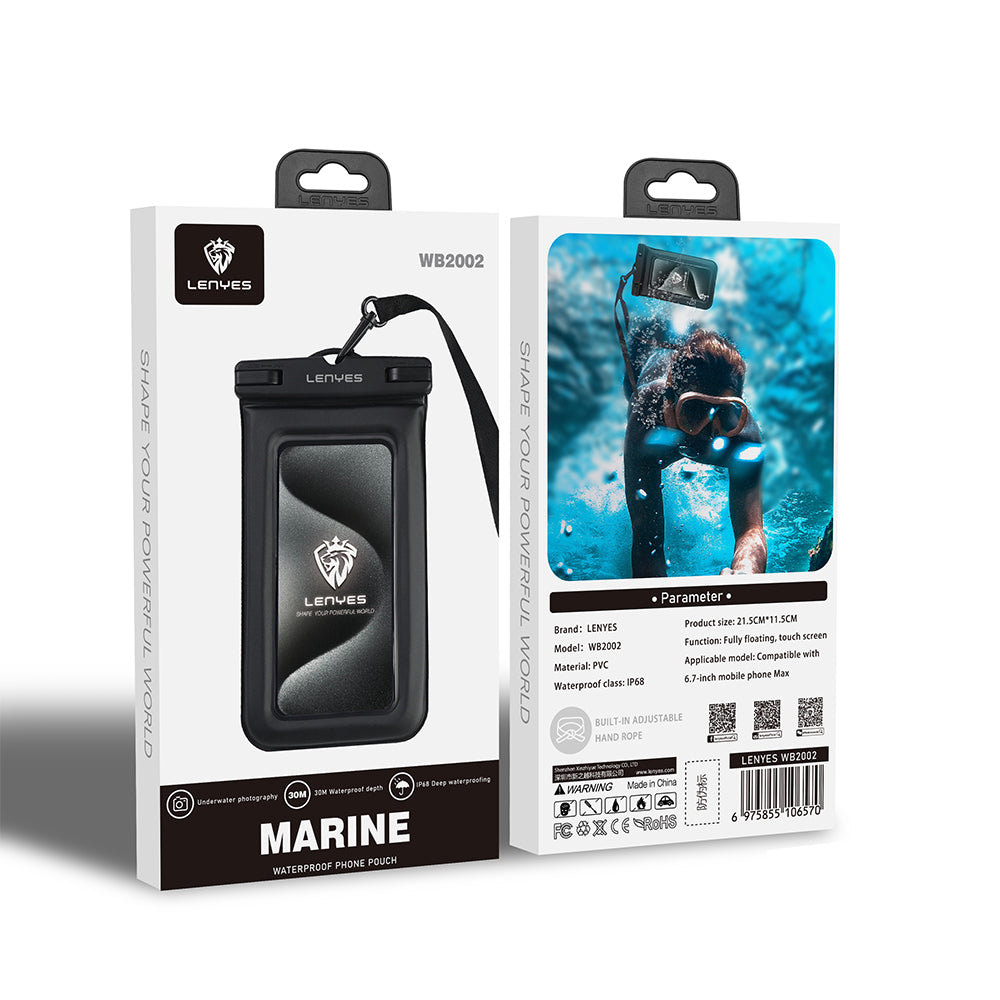 Lenyes WB2002, IP68 sertifikalı yapısıyla suya ve toza karşı üstün bir koruma sunar. Yüksek kaliteli yumuşak PVC malzemeden üretilmiş olup çizilmeye ve darbelere karşı dayanıklıdır. Bu kılıf, telefonunuzu zorlu koşullarda bile güvende tutar ve 30 metreye kadar su altında kullanıma uygundur. IP68 sertifikası, cihazınızın tam koruma sağlayarak sıvı ve toz girişine karşı mükemmel bir dayanıklılık sunduğunu kanıtlar.
