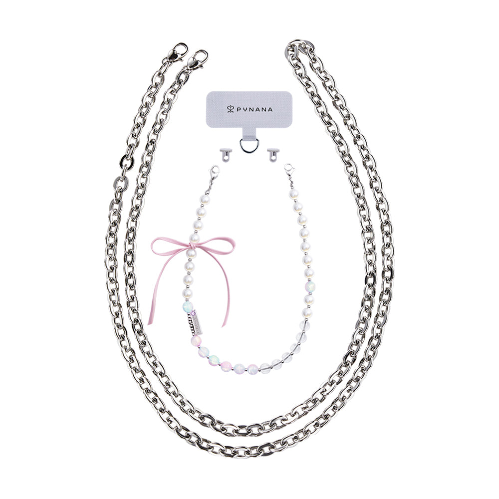 Pynana Charm Serisi 2 in 1 İnci Taşlı Telefon Boyun Askı İpi, şıklığı ve işlevselliği bir araya getiriyor. İnci ve kristal taş detaylarıyla zarif bir dokunuş sunarken, dayanıklı metal zincir yapısı ile güvenli bir kullanım sağlıyor. Özel tasarım kurdele detayı ise aksesuarınıza romantik bir hava katıyor ve stilinizi tamamlıyor.