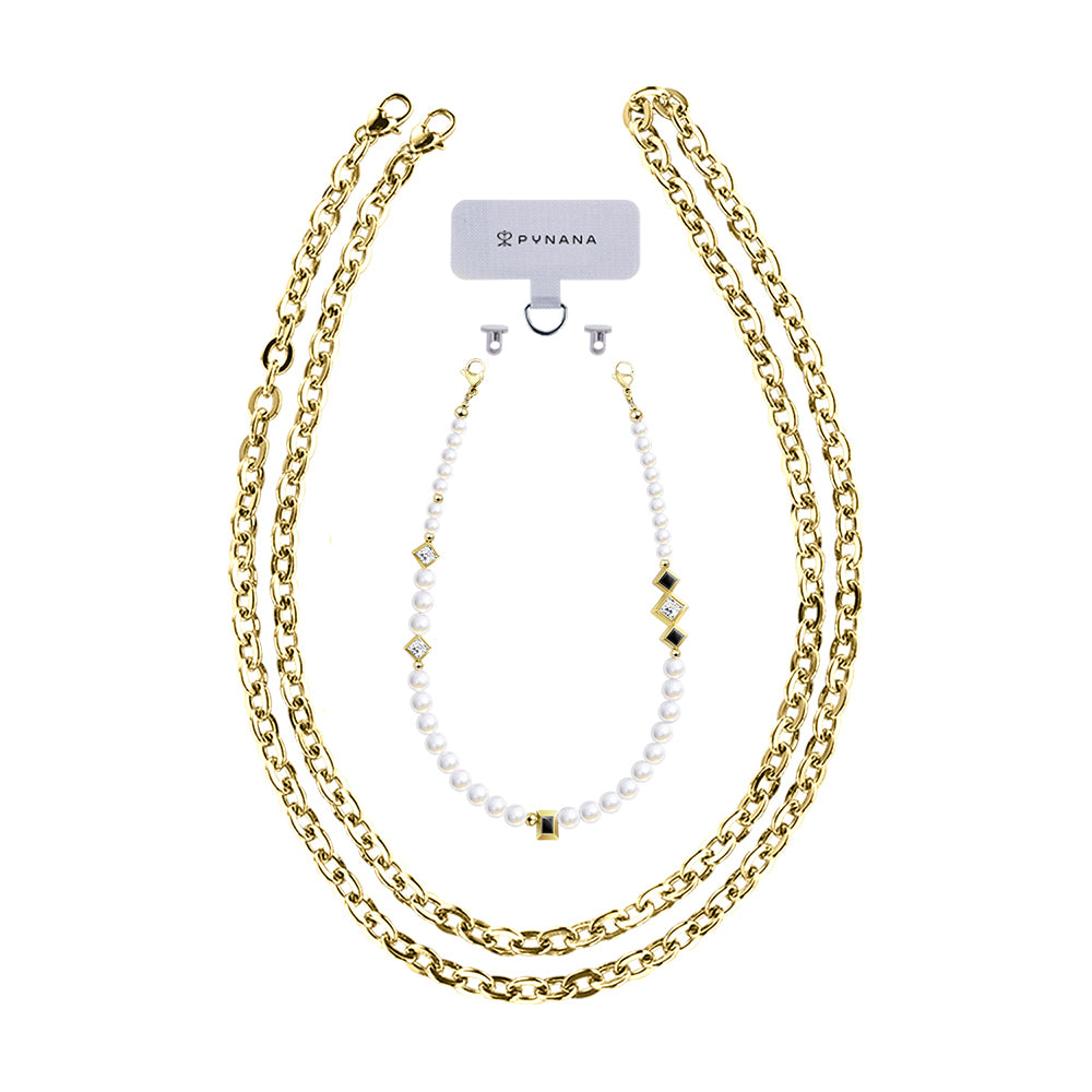 Pynana Free Diamond Serisi, inci taşların eşsiz zarafetiyle altın detayların lüks dokunuşunu bir araya getiriyor. Geometrik desenlerle zenginleştirilmiş, siyah ve altın tonlarının birleşimiyle sofistike bir tarz sunuyor. Günlük kullanımda fark yaratmak isteyenler için şıklık ve fonksiyonelliği bir arada sunan bu tasarım, her detayında özel işçilik barındırıyor.