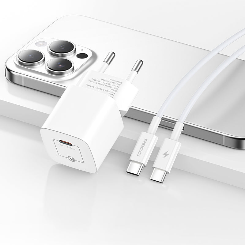 Recci RC77E GaN Teknolojili Hızlı Şarj Başlığı Type-C to Type-C PD 30W Kablolu Şarj Seti