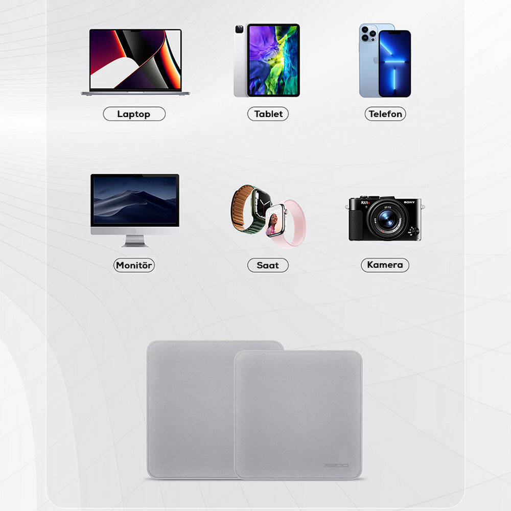 Recci RCS-S05 Mikrofiber Kompozit Ultrasonik Kaplama Nano Dokulu Parlatma ve Temizleme Bezi, nano dokulu tasarımıyla cihazlarınızı en üst düzeyde temizler. Toz geçirmez yapısı ve silme sırasında lifi çıkarmayan özelliği sayesinde, cihazlarınızda parmak izlerini ve dökülen sıvıları hızlıca ve etkili bir şekilde temizler. Laptop, iPad, telefon, gözlük, akıllı saat ve kameralar gibi birçok cihazda kullanıma uygundur, böylece günlük hayatınızın her anında temiz ve parlak ekranlarınızın keyfini çıkarabilirsiniz.