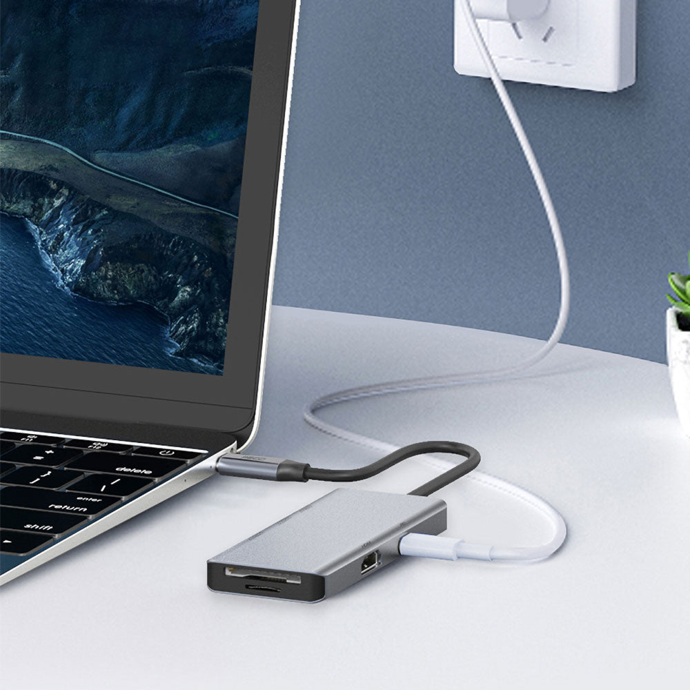 Recci RH07 7 in 1 Type-C Hub PD 100W Şarj Destekli SD Kart-HDMI-USB Çoğaltıcı Kablo