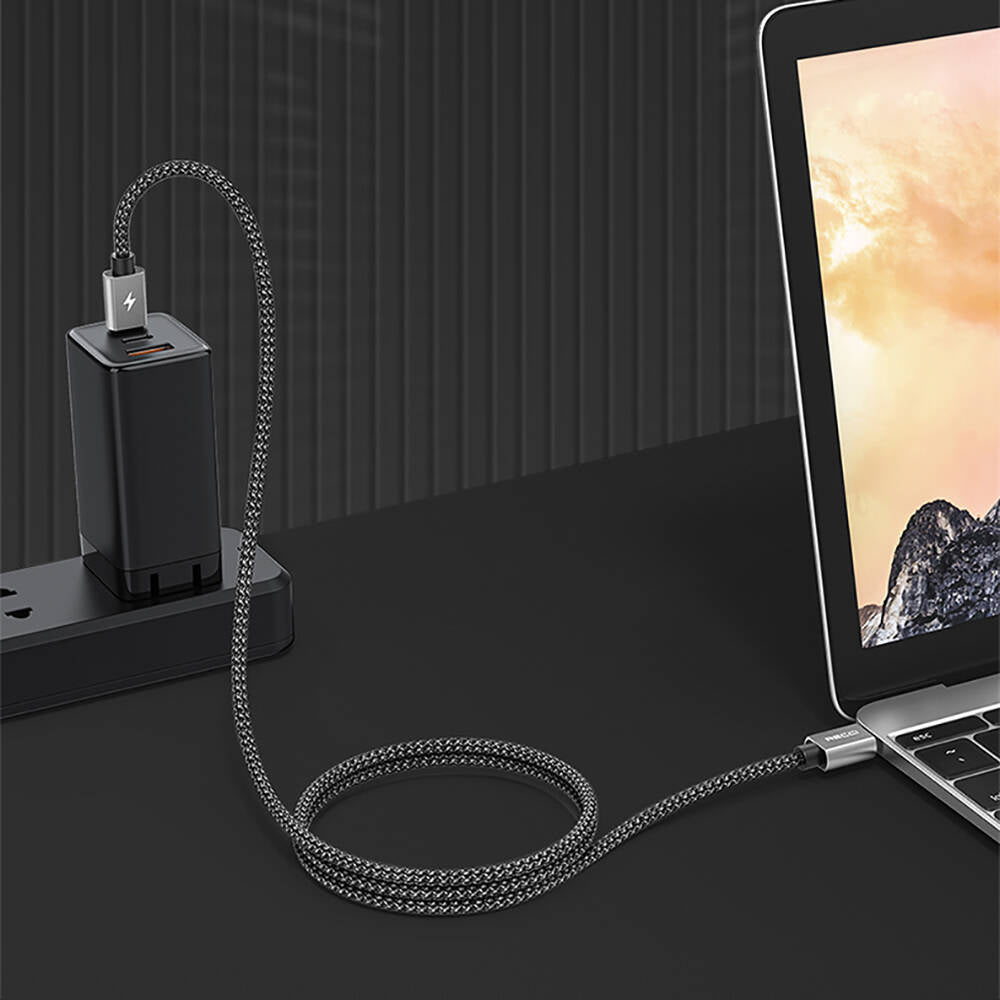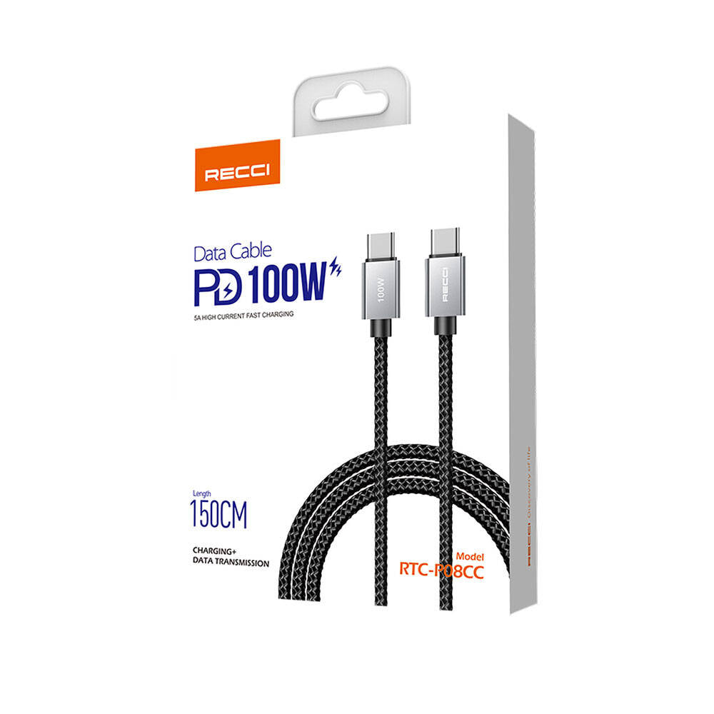 Recci RTC-P08CC Type-C to Type-C PD 100W 5A Hızlı Şarj Naylon Örgü Tasarım Şarj ve Data Kablosu 1.5M